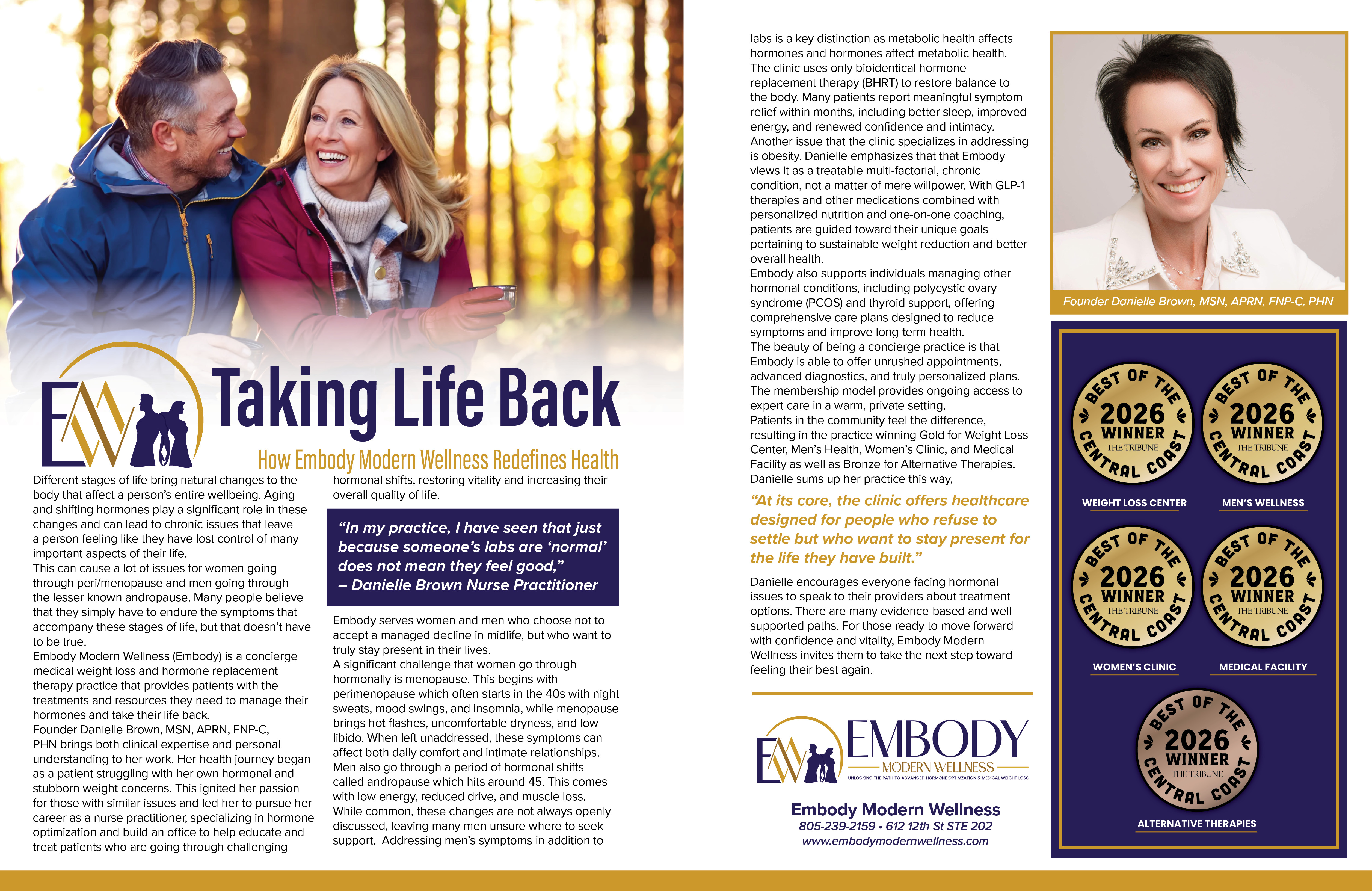 Wondering if Embody Modern Wellness is right for you? Below, we’ve answered the most common questions we hear from men and women in Paso Robles, CA, across California and Utah via telemedicine. Specializing in bioidentical hormone replacement therapy (BHRT) and medical weight loss, we’ve designed a premium, cash-pay concierge model for those ready to invest in their health—especially those who are facing hormone shifts and weight challenges. If you don’t see your question, reach out—we’d love to chat!